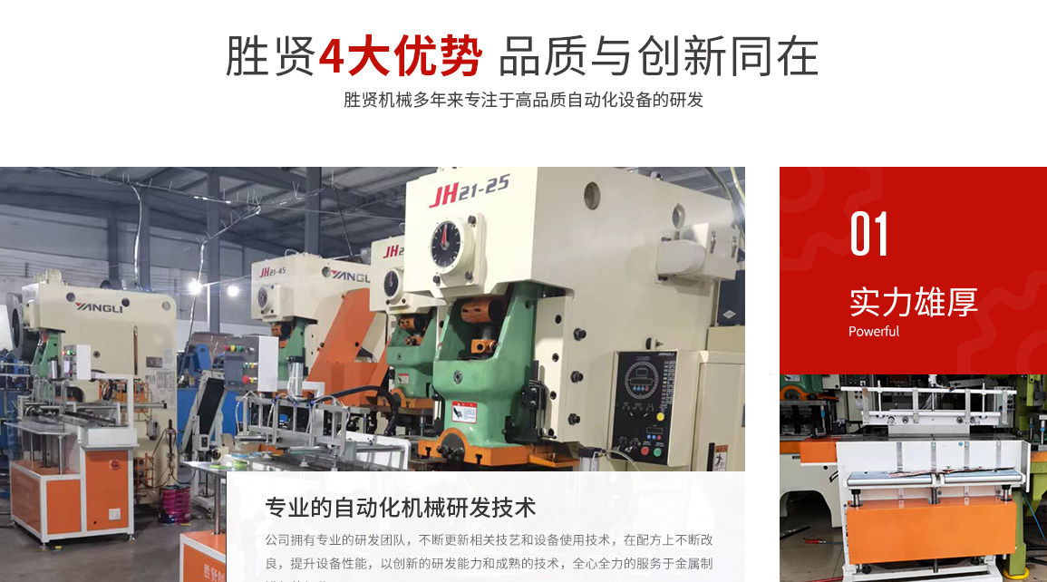 東莞市勝賢機(jī)械設(shè)備有限公司,是一家專業(yè)從事金屬制罐包裝行業(yè)的整套自動化設(shè)備和模具開發(fā)、制造與銷售的公司,擁有成熟的技術(shù)和創(chuàng)新開發(fā)能力。我們擁有有一批多年從事設(shè)計(jì)、研究開發(fā)的工程師,和設(shè)備、模具制作的技術(shù)人才。不斷推進(jìn)制罐行業(yè)向高效、環(huán)保、節(jié)能、操作簡易化的方向發(fā)展。 公司主要產(chǎn)品:多次元機(jī)械手設(shè)備生產(chǎn):含片盒蓋/底自動生產(chǎn)線,煙盒蓋/底自動生產(chǎn)線,醫(yī)藥盒蓋/底自動生產(chǎn)線,茶葉罐蓋圈/酒罐蓋圈自動生產(chǎn)線,酒罐蓋自動生產(chǎn)線、茶葉罐拍底自動生產(chǎn)線等等。 罐身自動扣骨機(jī)生產(chǎn):茶葉罐/酒罐/化妝品罐/內(nèi)衣罐等等. 其中多次元機(jī)械手專為兩片盒的生產(chǎn)和三片罐的蓋、底、蓋圈、拍底蓋等的生產(chǎn)而設(shè)計(jì),...
